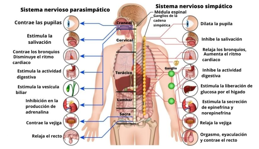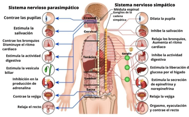 The Autonomous Nervous System (SNA) is responsible for regulating various functions of our body in an autonomous way. Exactly, without us noticing. It is made up of the Sympathetic Nervous System and the Parasympathetic Nervous System. While the parasympathetic nervous system is dominated by the neurotransmitter acetylcholine that acts on muscarinic and nicotinic receptors. And it is in charge of predisposing us to enjoy the pleasures of life such as eating, sleeping or reproducing. The sympathetic nervous system is dominated by adrenaline and norepinephrine acting on adrenergic receptors. And they predispose us to be alert, fight, flee or have an orgasm.