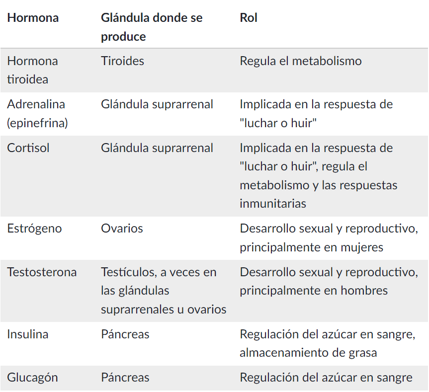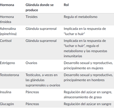 Hormonas y glándulas comunes