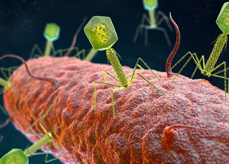 En cierto modo, los fagos son como los depredadores de las bacterias, y han evolucionado junto a ellas durante millones de años. De hecho, son uno de los mayores responsables de muertes en la tierra, pero estamos de suerte porque solo comen bacterias. Por lo tanto, pueden ser una herramienta útil para combatir infecciones bacterianas en humanos.